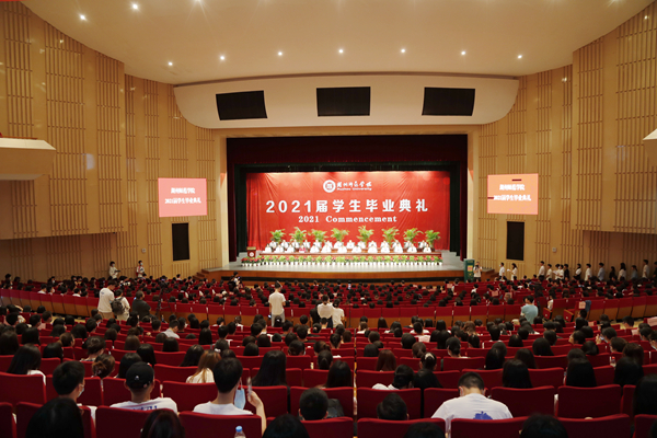6月16日上午,我校2021届学生毕业典礼在东校区会堂隆重举行。校党政领导班子出席。各二级学院负责人、相关部门负责人、党委(总支)副书记、辅导员、毕业班班主任、全体2021届毕业生参加了典礼。毕业典礼由副校长舒志定主持。本次典礼在各二级学院设有直播分会场。