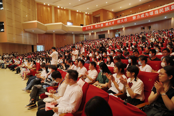 毕业班班主任代表潘永良表示,他是与学生在校园里一起成长起来的。学生给了他很多的进步的力量,因为学生们越优秀,身为班主任的他就需要越努力。潘永良说,毕业生们已从稚气未脱的学子成长为了社会栋梁,希望他们将自己积累沉淀的知识、德行转化为未来建设家国的力量。