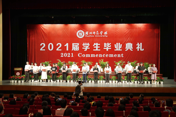 舒志定宣读了2021届毕业生名单,校党政领导班子为毕业生代表颁发了毕业证书。