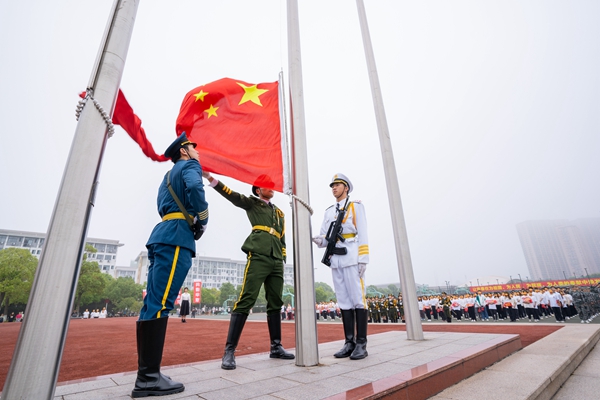 宣传部、学工部开展“庆祖国73华诞,青春献礼二十大”升旗仪式。近千名师生齐聚长兴广场,在嘹亮的口号声中,国旗护卫队迈着矫健的步伐,庄严走向旗台。蔚蓝天空下,伴随着雄壮的《义勇军进行曲》,鲜艳的五星红旗冉冉升起。全体人员精神饱满、肃然而立,向五星红旗行注目礼,以此表达对祖国的赤诚之心和美好祝福。人文学院学生代表在仪式上进行了励志演讲、诗朗诵,全体师生齐唱《我和我的祖国》,向祖国深情告白。