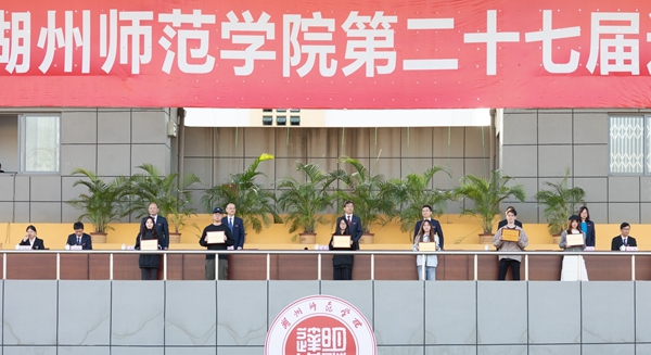 校党委副书记丁敢真致闭幕辞。他表示,这场运动盛会,不仅是对我校体育工作的一次大检阅,更是全体师生团结协作、奋勇拼搏精神的生动展现。在为期三天的运动赛场上,青春与热血共燃、汗水与斗志并行,给我们留下了许多珍贵的回忆,也生动诠释了“更高、更快、更强、更团结”的奥林匹克精神。希望全体同学把运动场上的激情与活力转化为攻坚克难的勇气,把挑战自我的决心转化为追求卓越的动力,在知识的海洋中勇攀高峰,在实践的熔炉中锤炼本领,努力成长为德智体美劳全面发展的社会主义建设者和接班人;希望全体教职工继续发扬敬业奉献精神,以强健的体魄和饱满的热情投身教育事业,为培养更多“明体达用”的优秀人才、加快推进高水平湖州师范大学建设贡献更多力量。